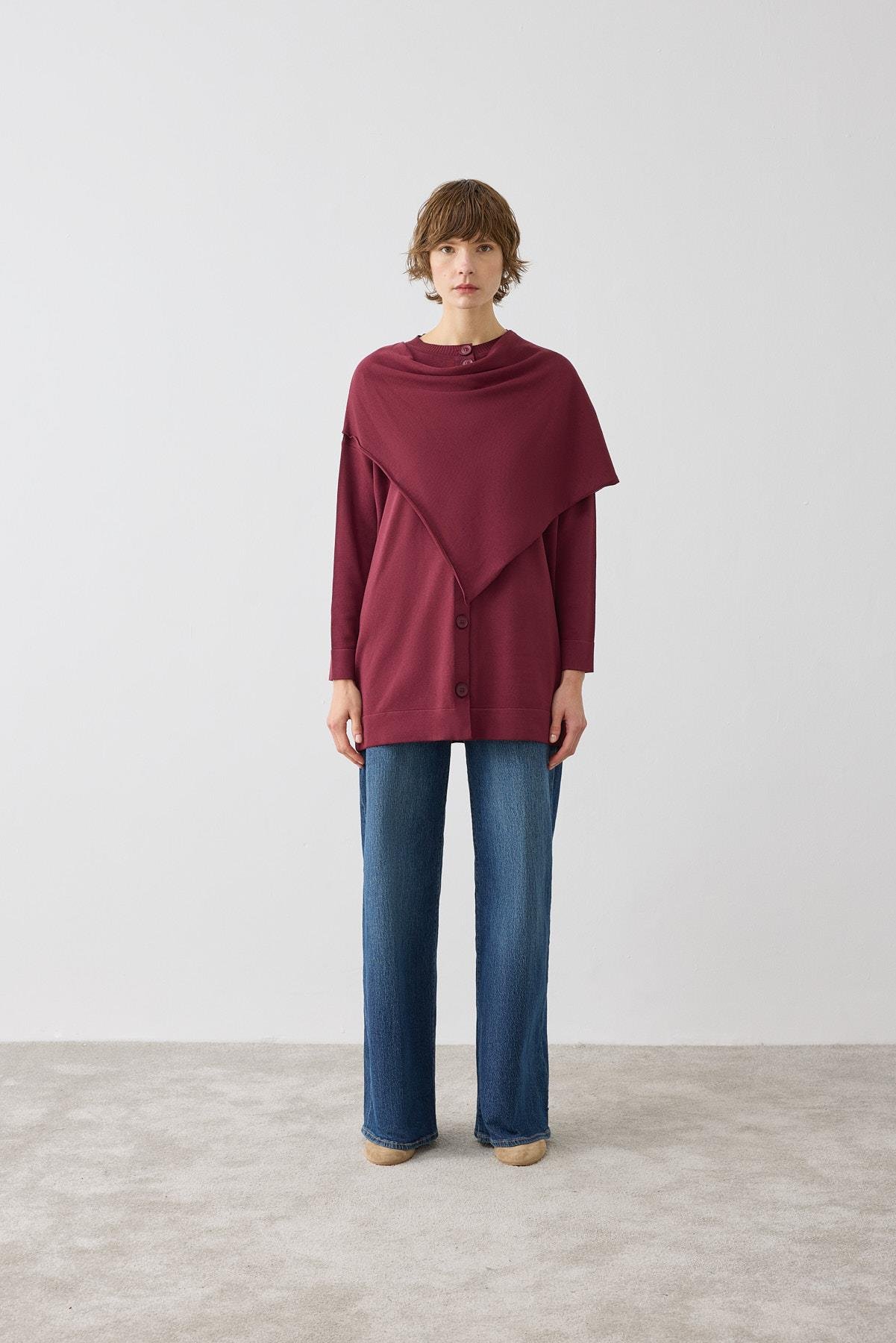 BRELA ŞAL DETAYLI TRİKO HIRKA BORDO (TD26K06000011)