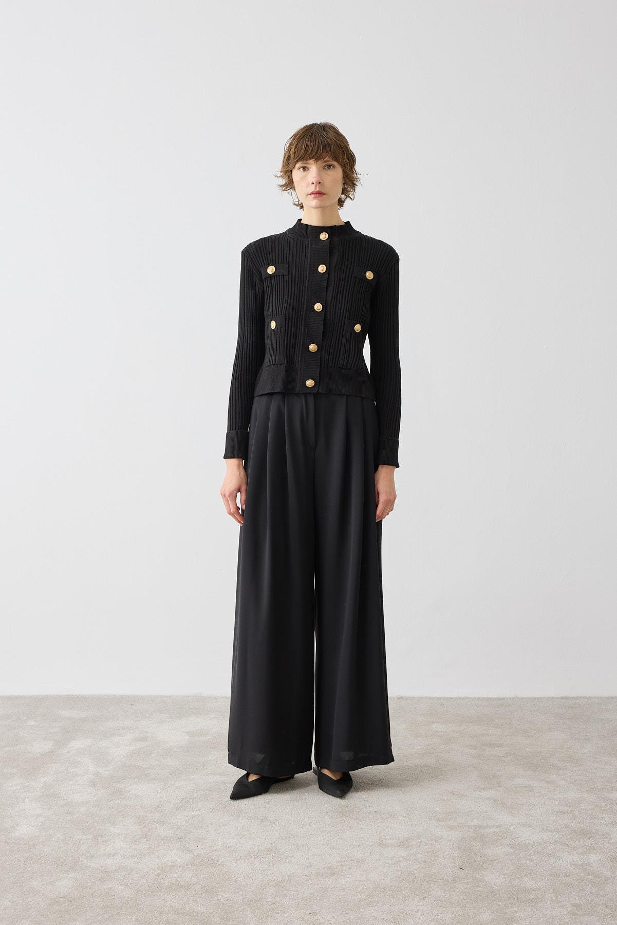 DİVA DÜĞMELİ TRİKO HIRKA SİYAH (TD23M06033002)