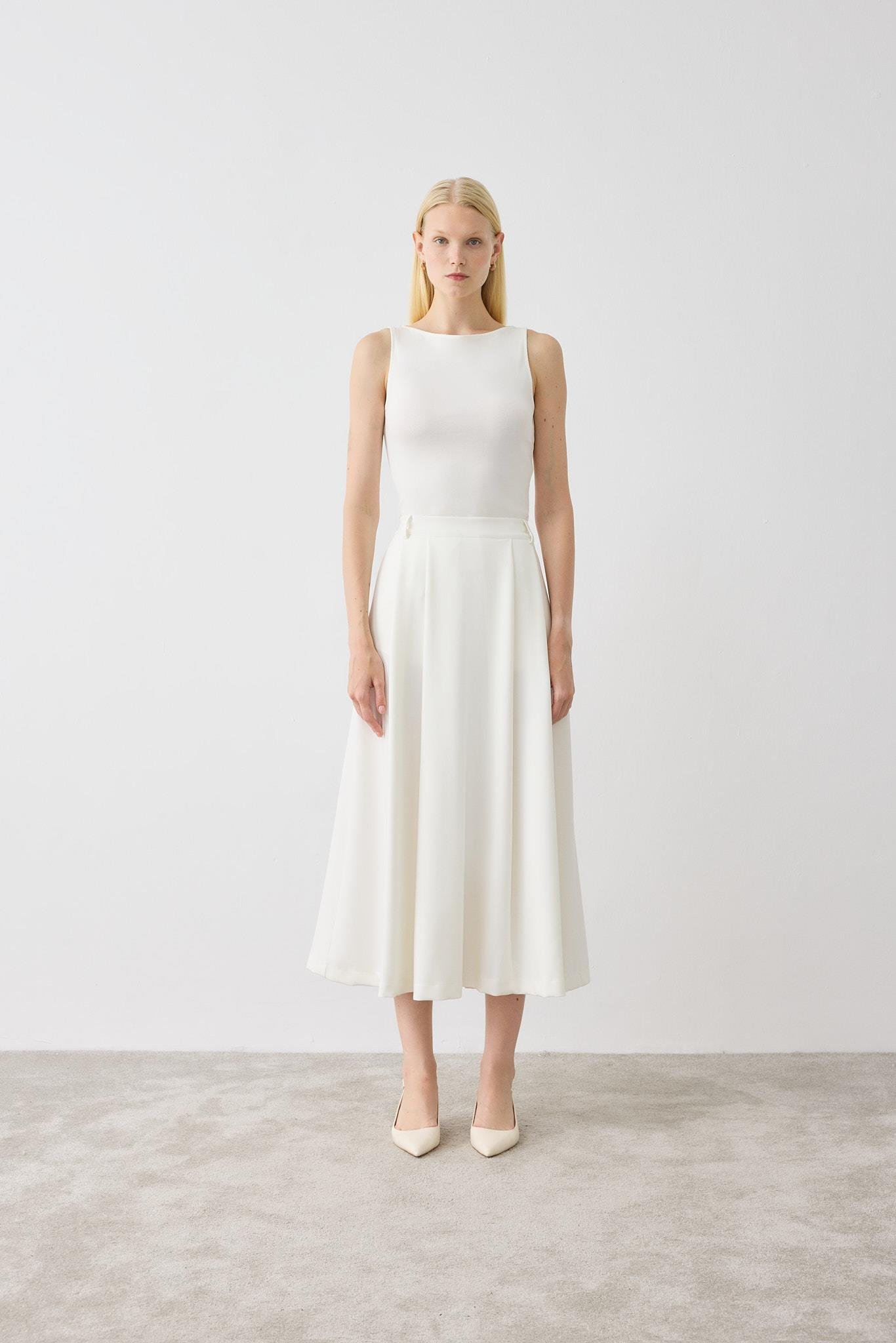 DORE PİLELİ ETEK BEYAZ