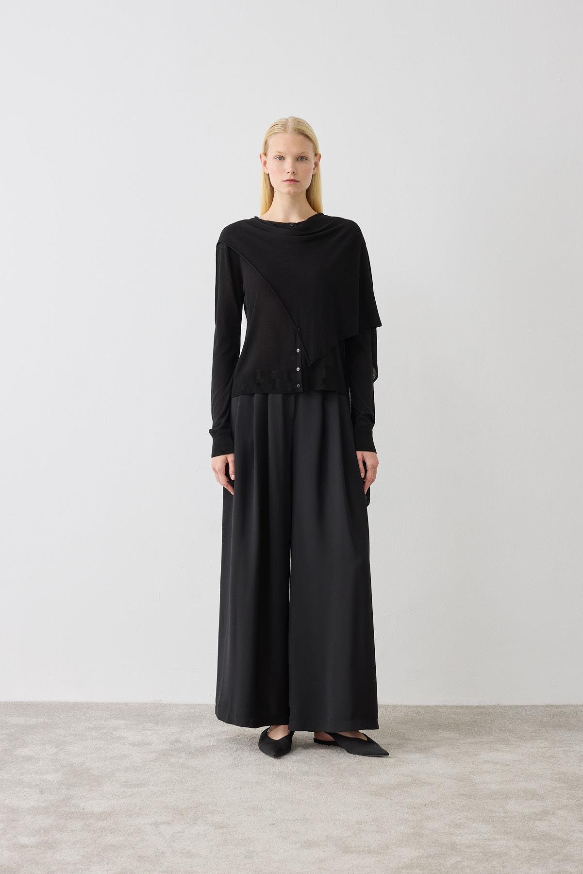 DOREN ŞAL DETAYLI TRİKO MERSERİZE HIRKA SİYAH (TD26K06000009)