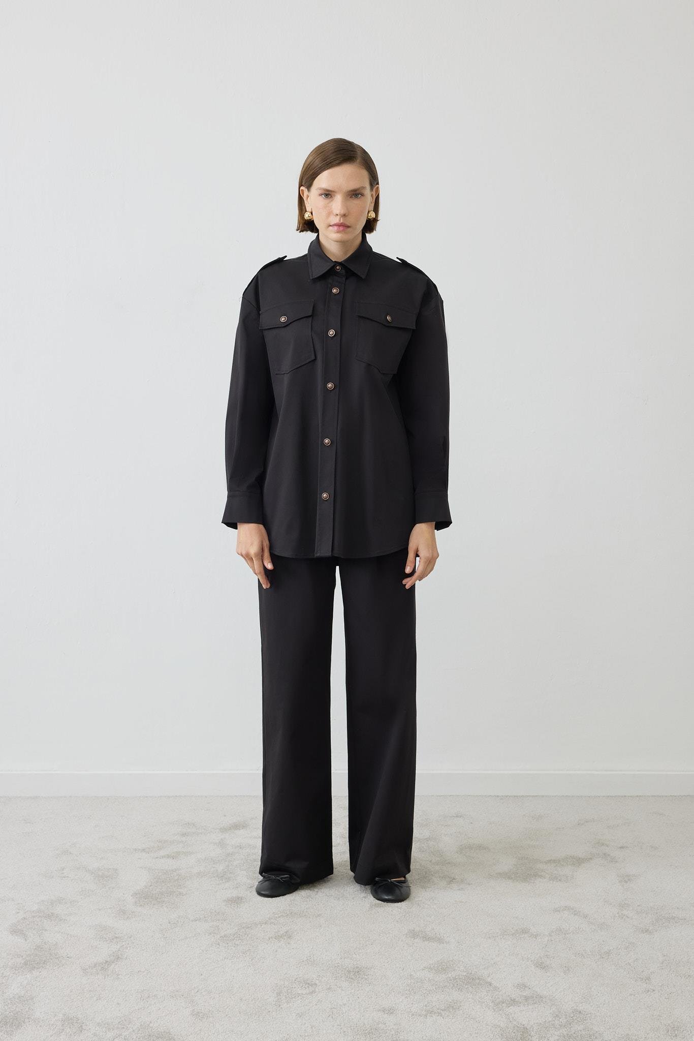 AMORE GABARDİN CEPLİ PANTOLON TAKIM SİYAH (TD26K05000023)