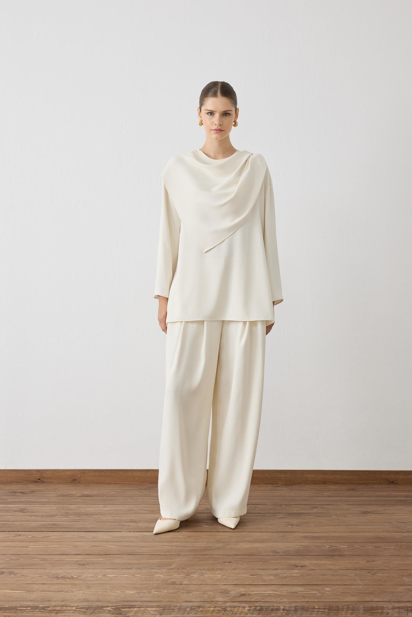 FERAL ŞAL DETAYLI PANTOLONLU TAKIM EKRU (TD26K05000011)