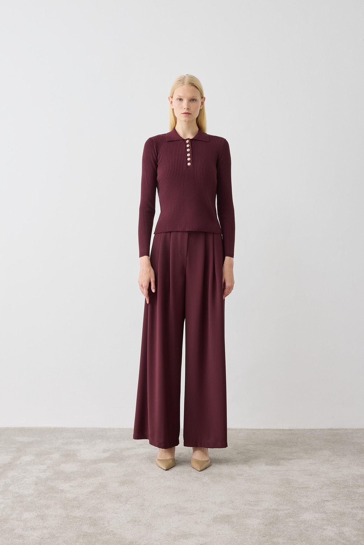 STONE TRİKO POLO YAKA KAZAK BORDO