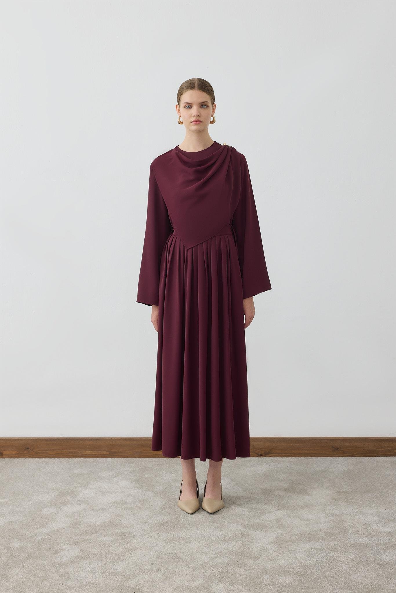 FERAL ŞAL DETAYLI ETEKLİ TAKIM BORDO (TD26K05000012)