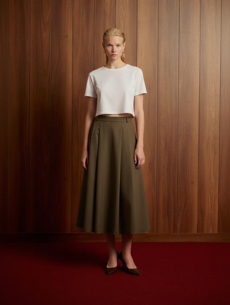 FLAM GABARDİN PİLELİ ETEK HAKİ (TD26K07000011)
