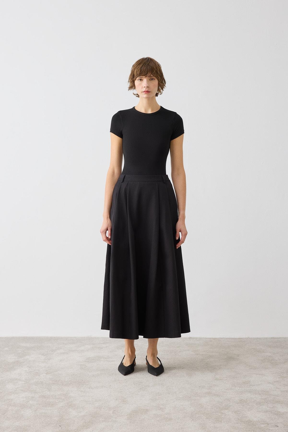 FLAM GABARDİN PİLELİ ETEK SİYAH (TD26K07000011)