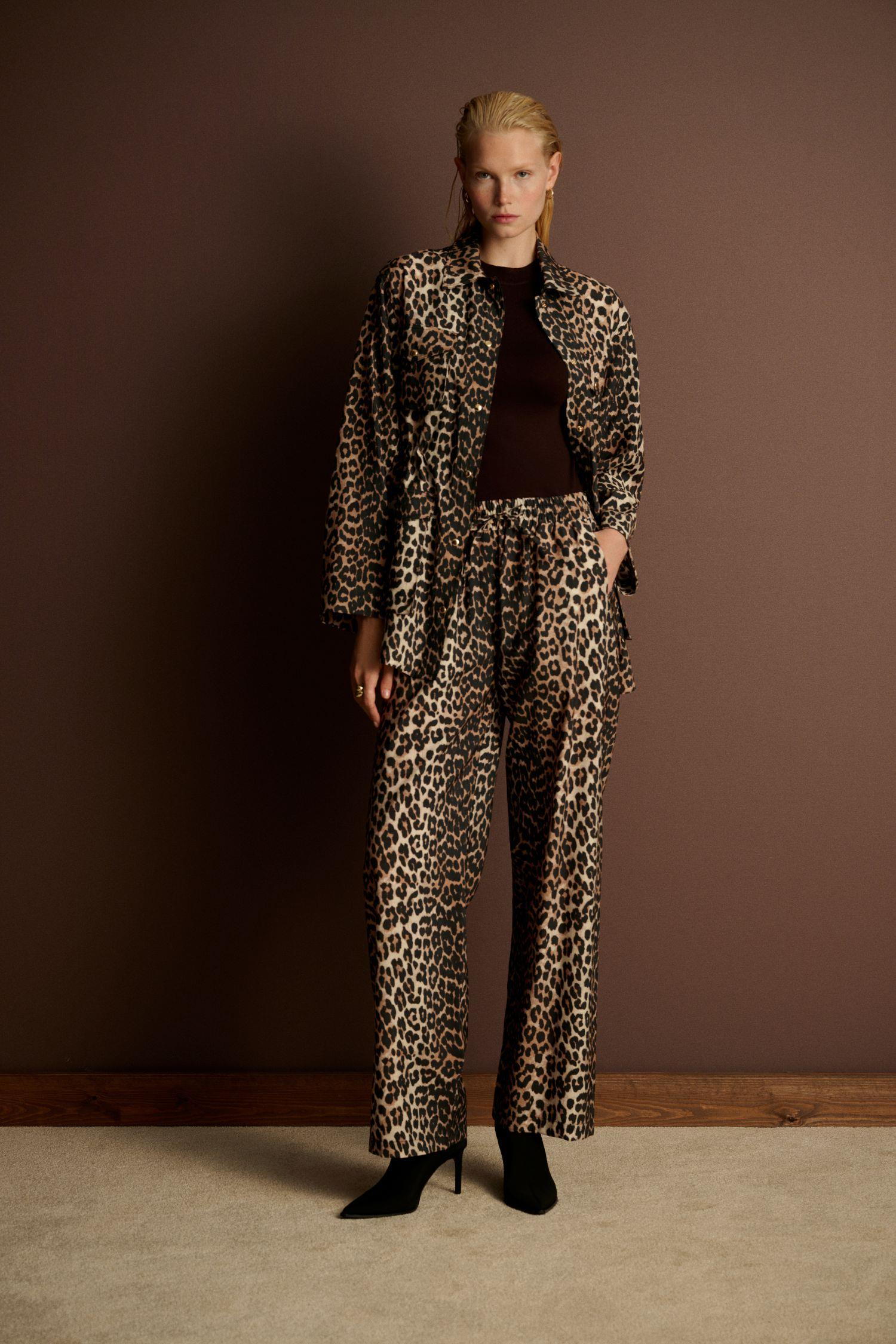 LEOPAR DESEN CEPLİ PANTOLONLU TAKIM KAHVE