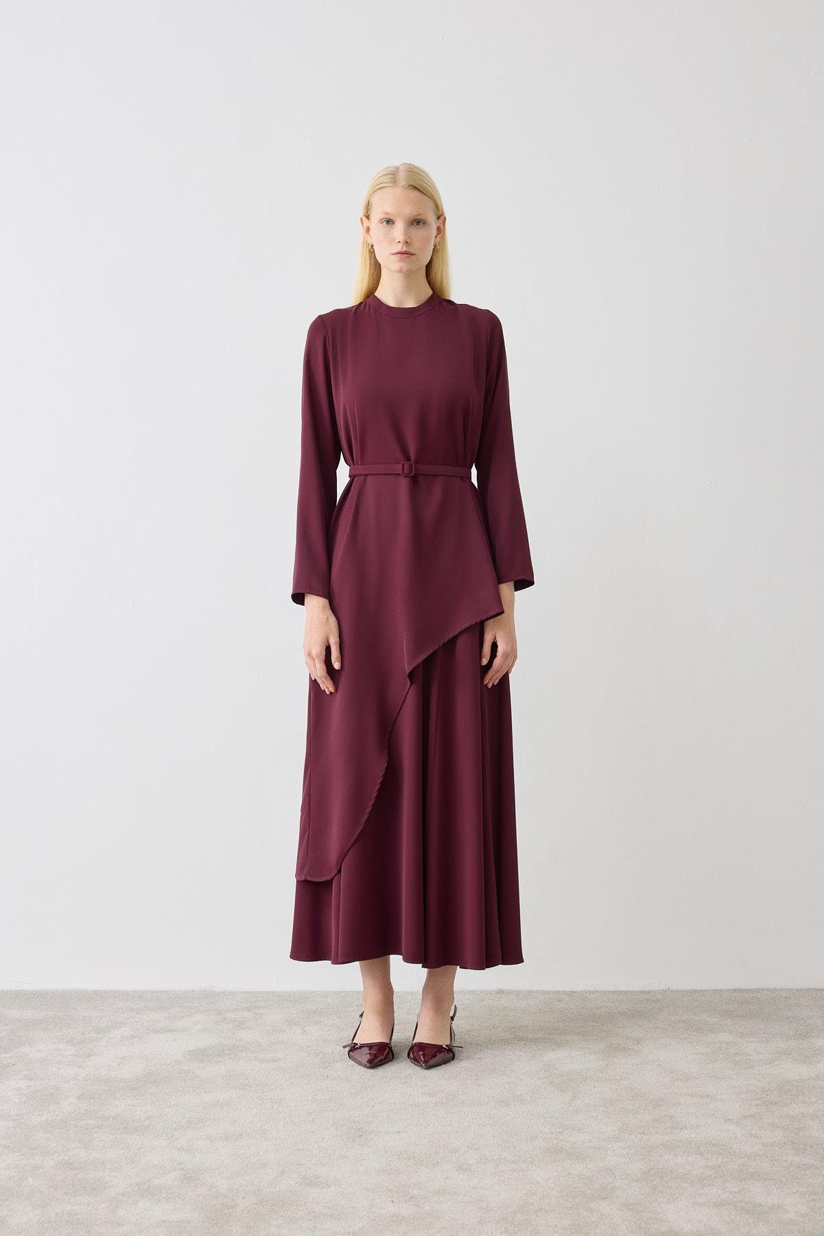MELİN ASİMETRİK KESİM ETEKLİ TAKIM BORDO (TD26K05000005)