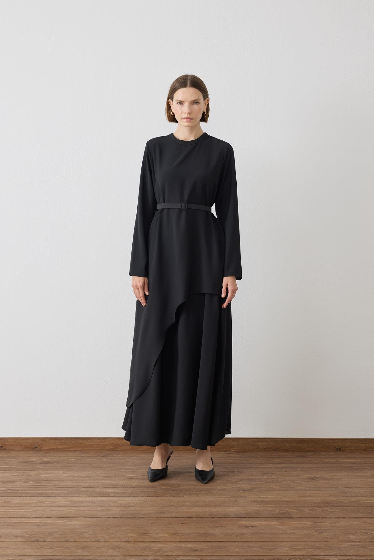 MELİN ASİMETRİK KESİM ETEKLİ TAKIM SİYAH
