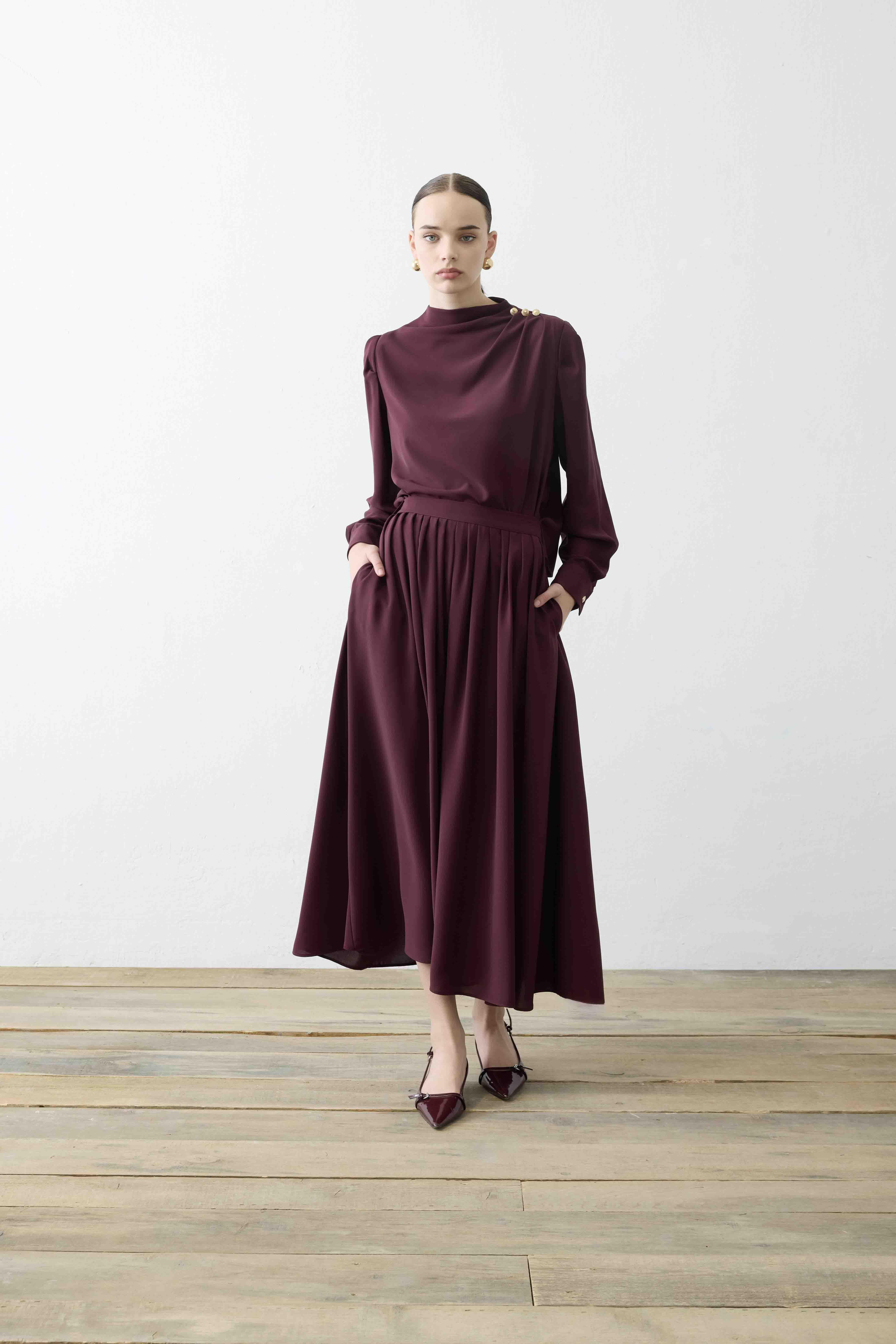 MİORİ BOİS ETEKLİ KREP TAKIM BORDO (MIO26Y0500003)