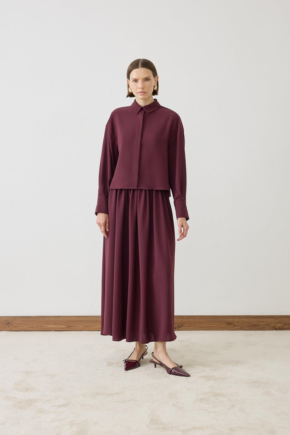 MİORİ LİNZA PLİSE GÖMLEKLİ ETEKLİ KREP TAKIM BORDO