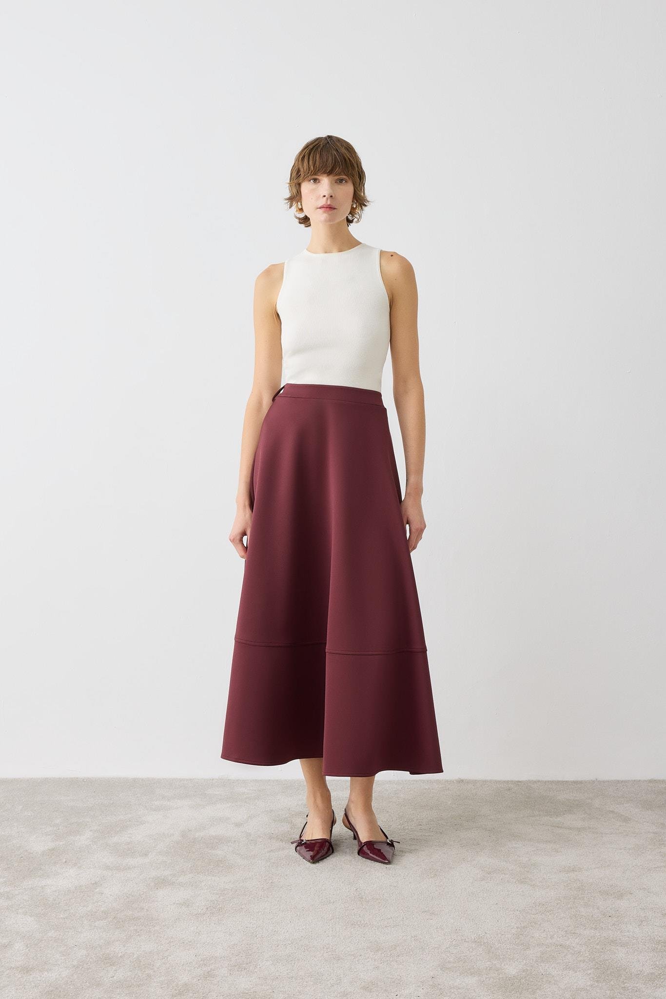 MİRA SCUBA ALTI PARÇALI KLOŞ ETEK BORDO (TD24K07033027)