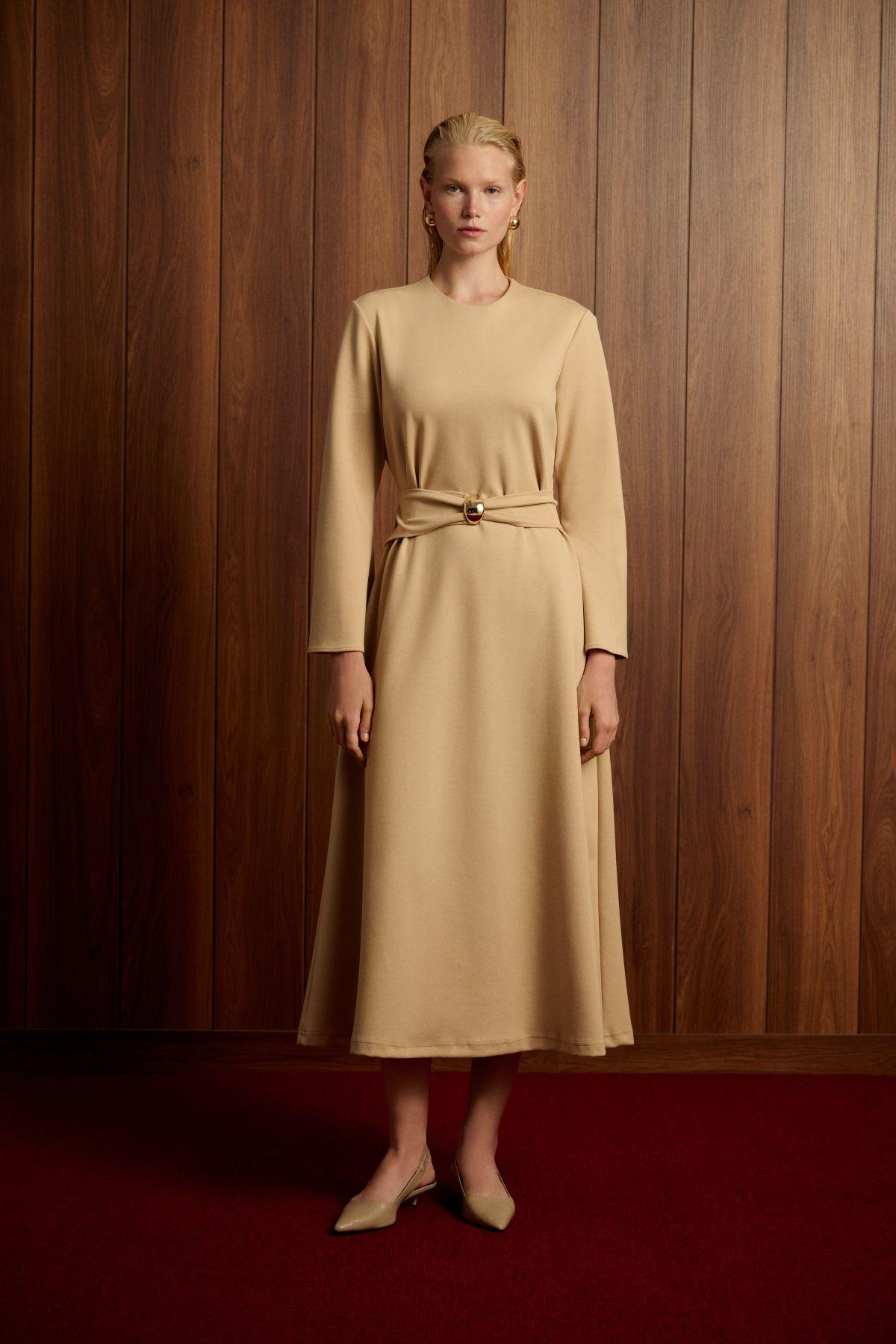 NAKSU GOLD KEMER DETAYLI ÖRME ELBİSE BEJ (TD26K31000015)