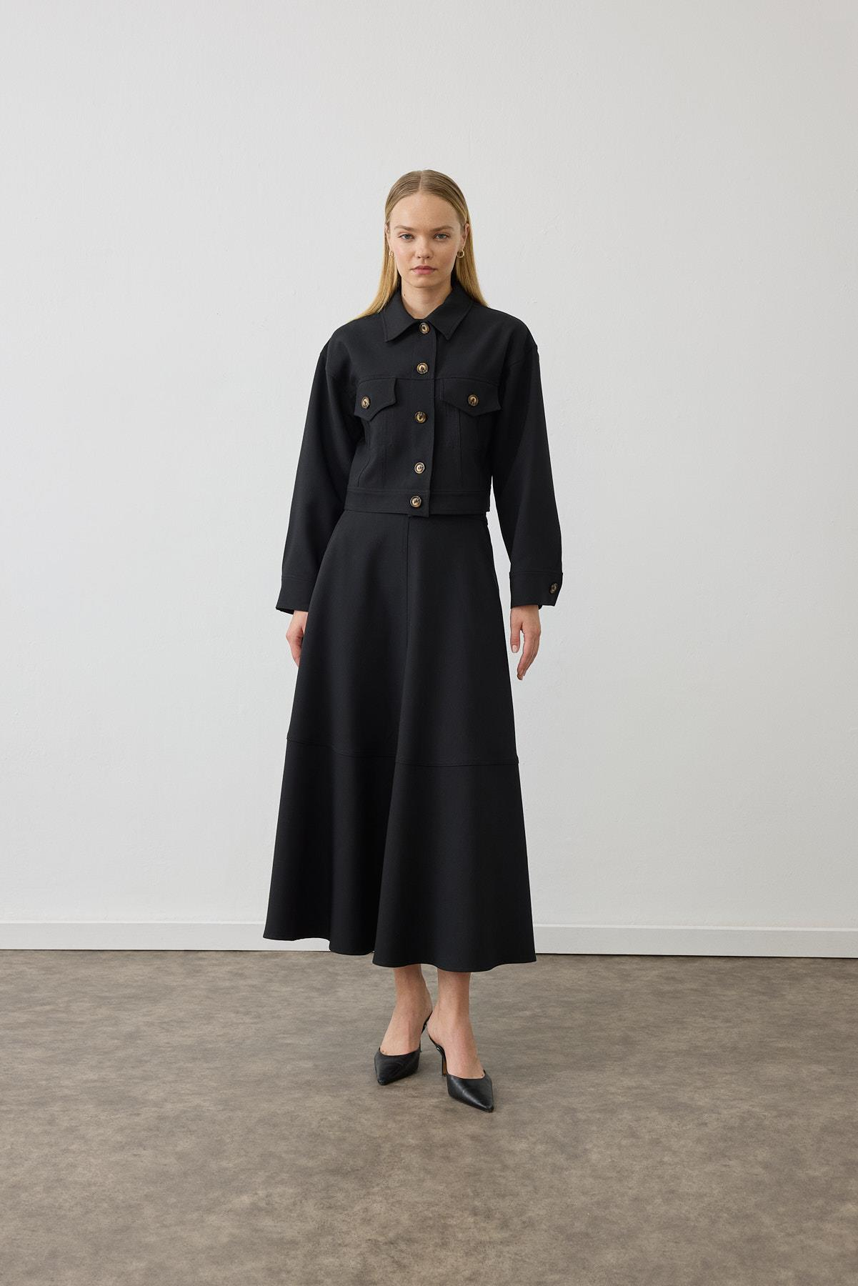 PARIS DİKİŞ DETAYLI CEKET ETEKLİ TAKIM SİYAH