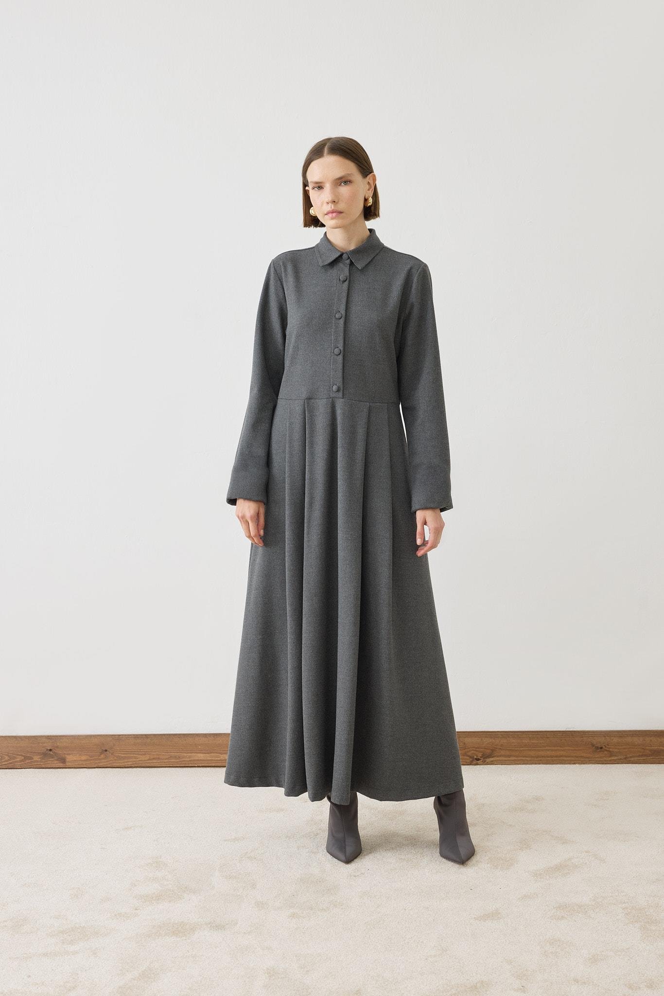 PETRA PİLE DETAYLI ELBİSE GRİ