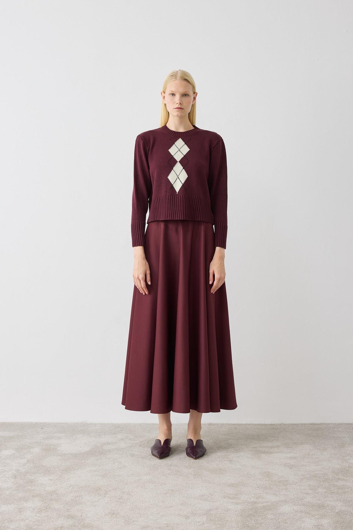 RETRO BAKLAVA DESEN PAMUK TRİKO KAZAK BORDO (TD26K15000001)