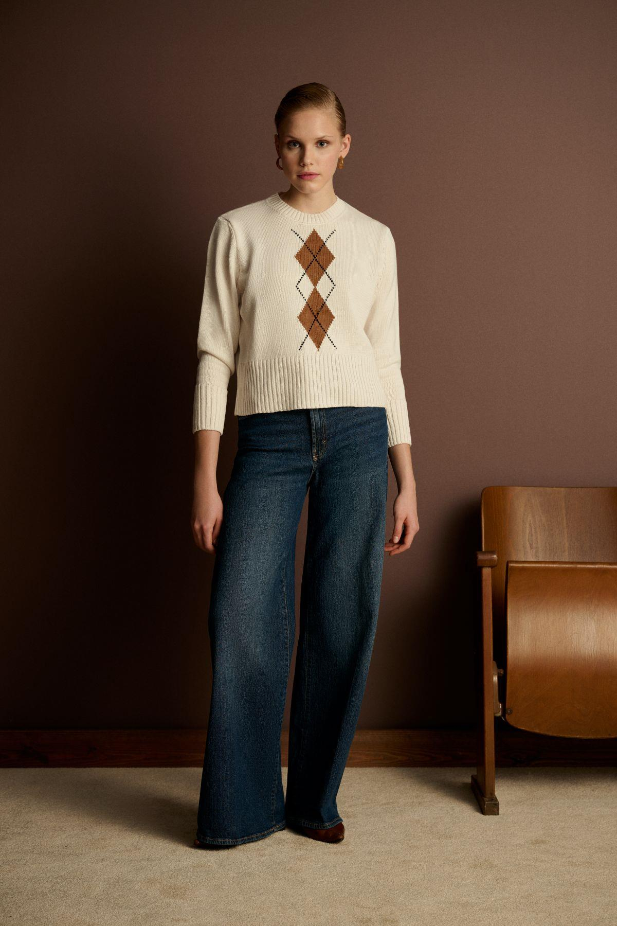 RETRO BAKLAVA DESEN PAMUK TRİKO KAZAK TAŞ