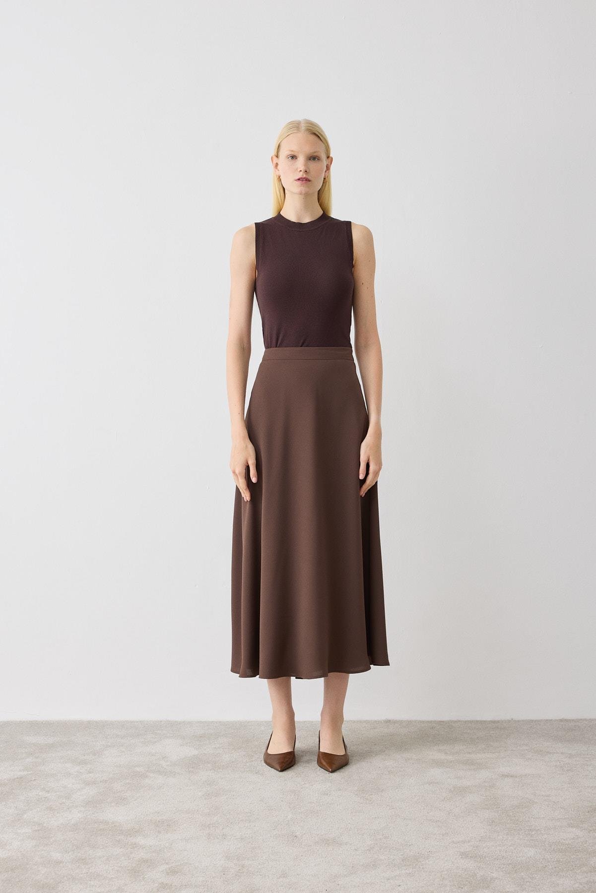 RİNA KREP VEREV ETEK KAHVE (TD25K07033005)