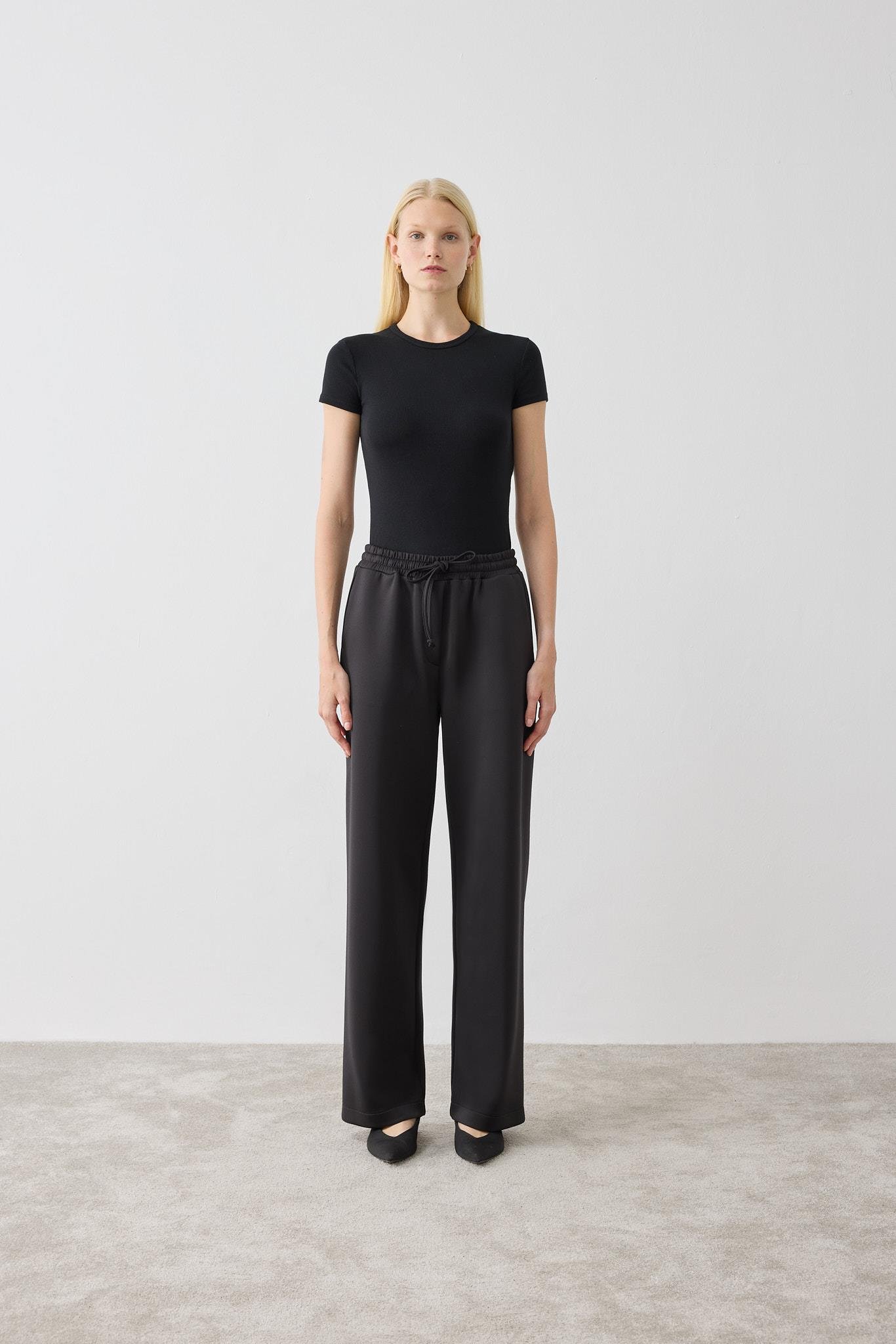 SCUBA BELİ LASTİKLİ PANTOLON SİYAH
