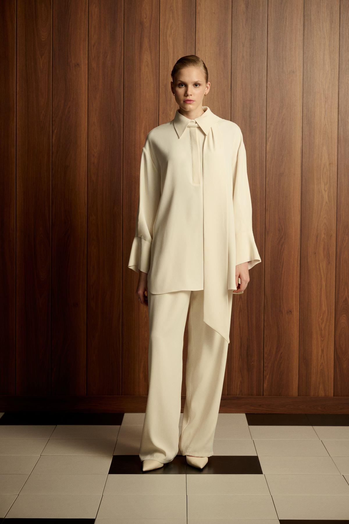 SOLEN ŞAL DETAYLI GENİŞ MANŞET PANTOLONLU TAKIM VANİLYA (TD26K05000008)