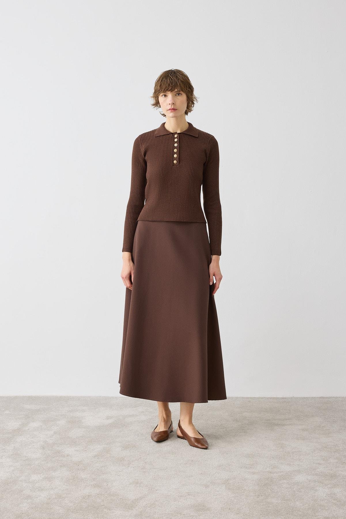 STONE TRİKO POLO YAKA KAZAK KAHVE