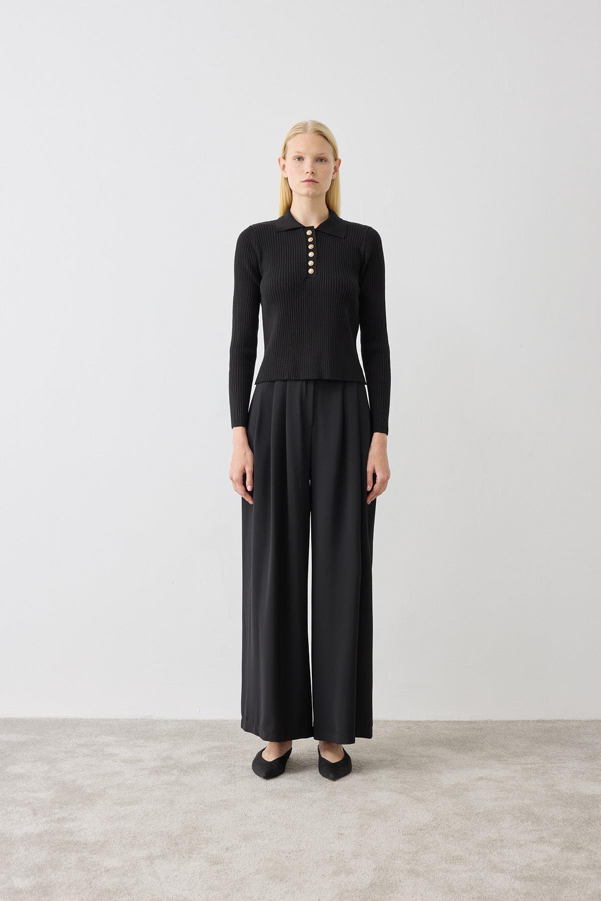 STONE TRİKO POLO YAKA KAZAK SİYAH (TD26K15000003)