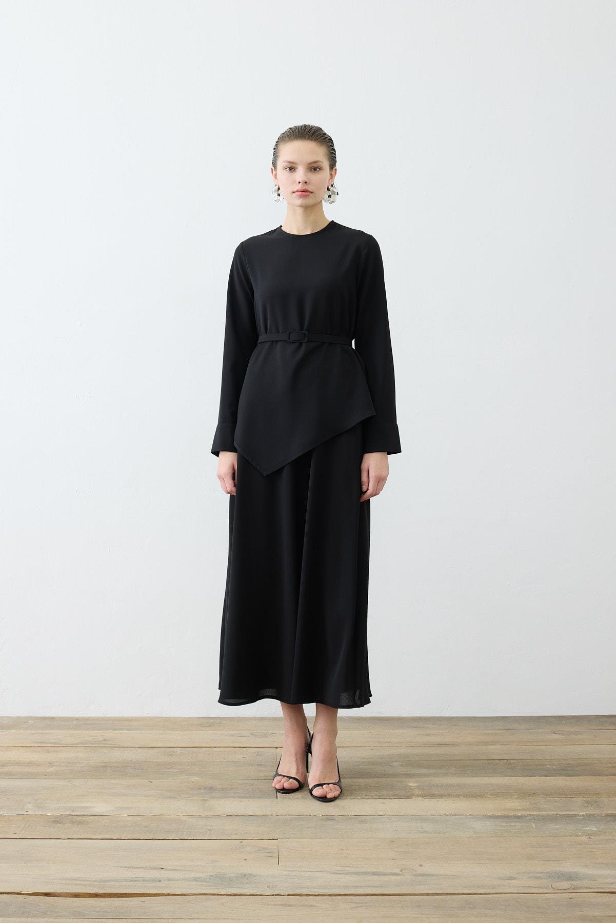 VALEN KREP ASİMETRİK ETEKLİ TAKIM SİYAH