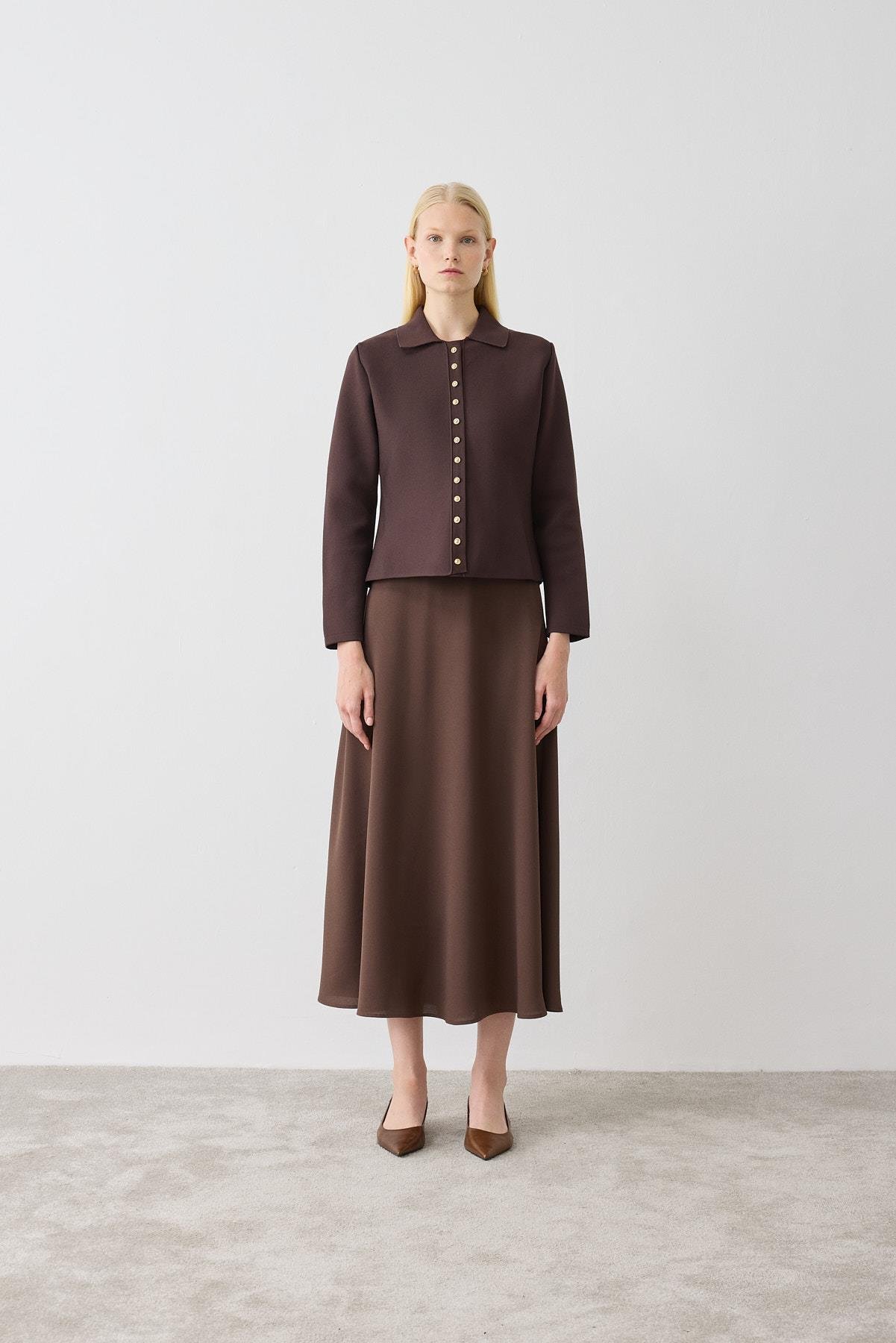 VALER PEPLUM ÇELİK ÖRME TRİKO HIRKA KAHVE (TD26K06000002)