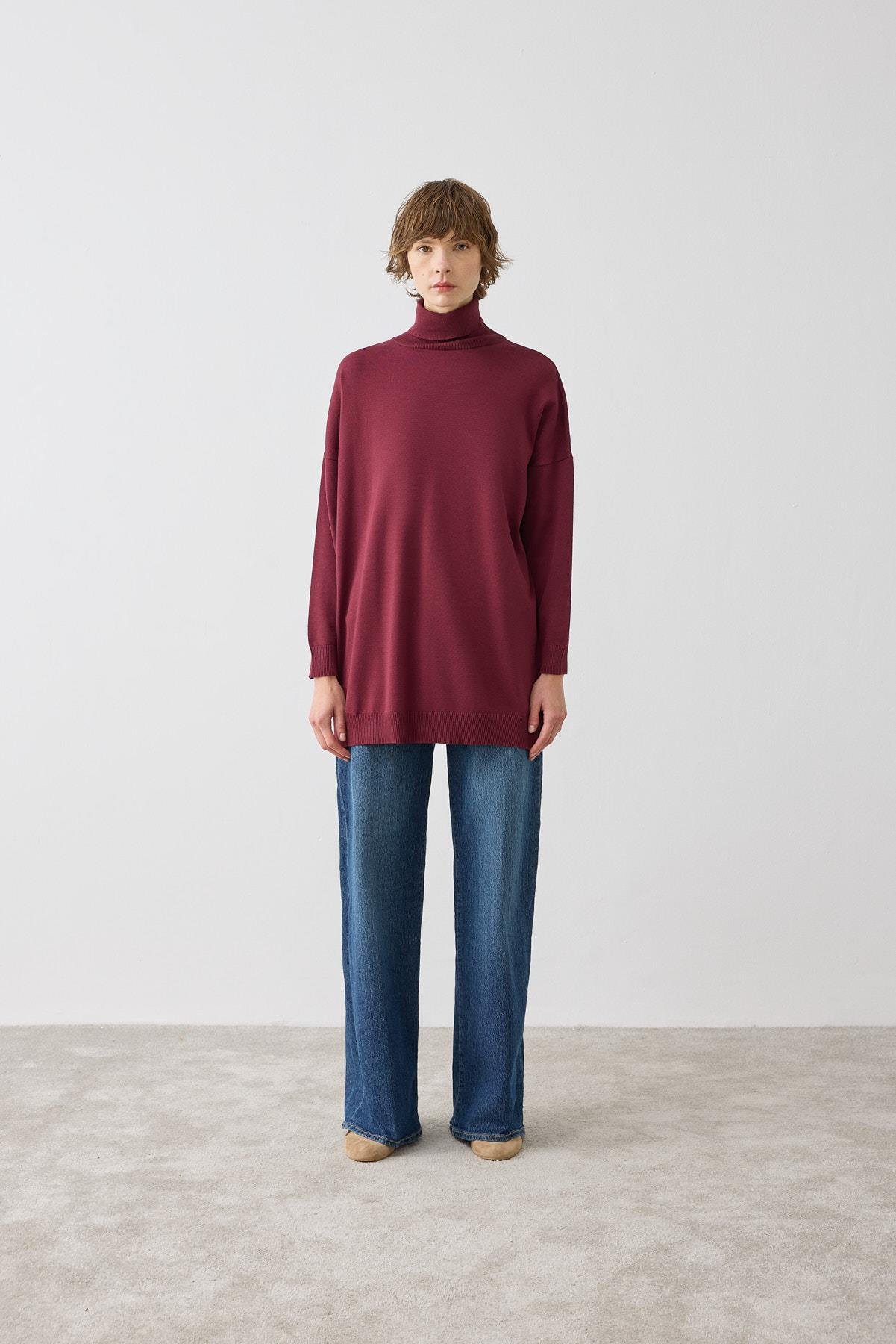 VOLETA MERSERİZE VİSKON BOĞAZLI TRIKO TUNIK BORDO (TD25K01033001)